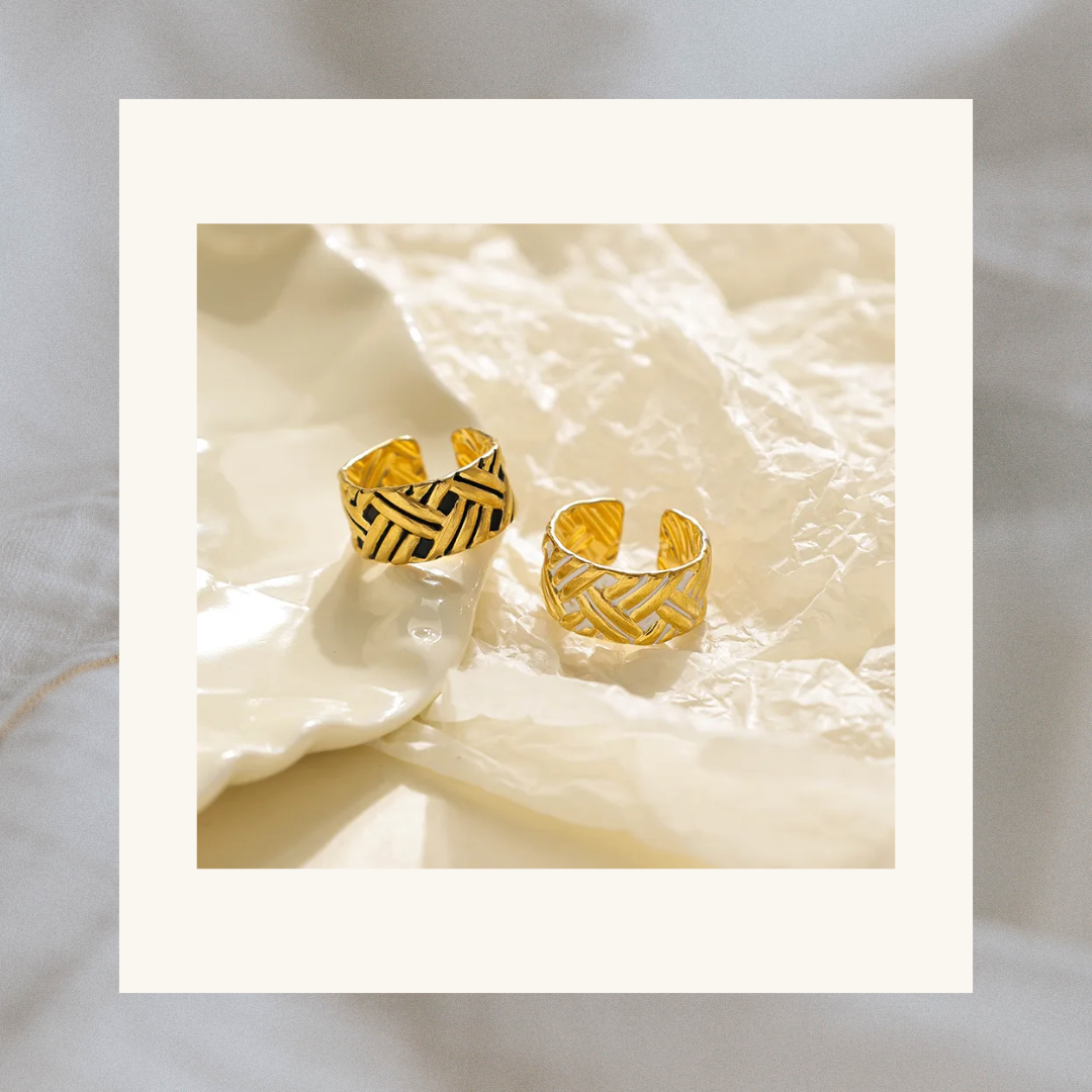 Meet our Interwoven Ring, your new go-to accessory for effortless elegance. Crafted from high-quality stainless steel and finished with a radiant gold plating, this adjustable ring is designed to shine.